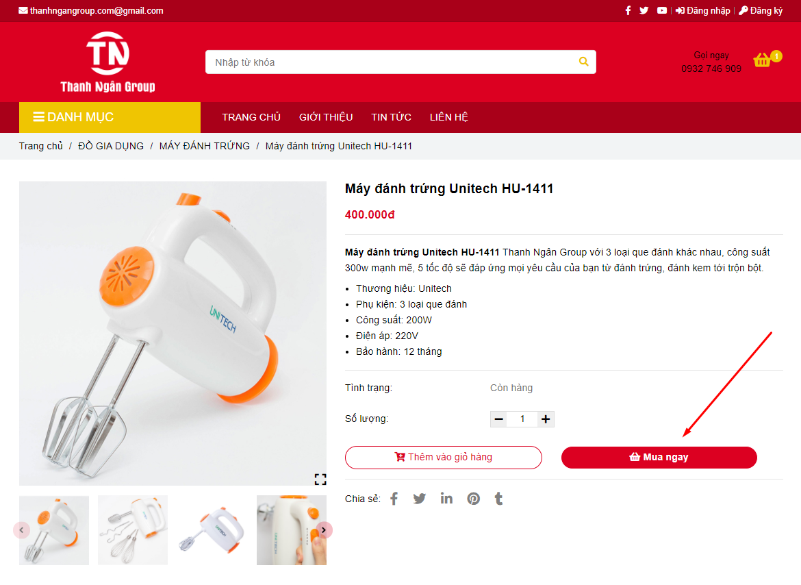 - Bước 4: click vào nút Mua ngay để chọn mua sản phẩm