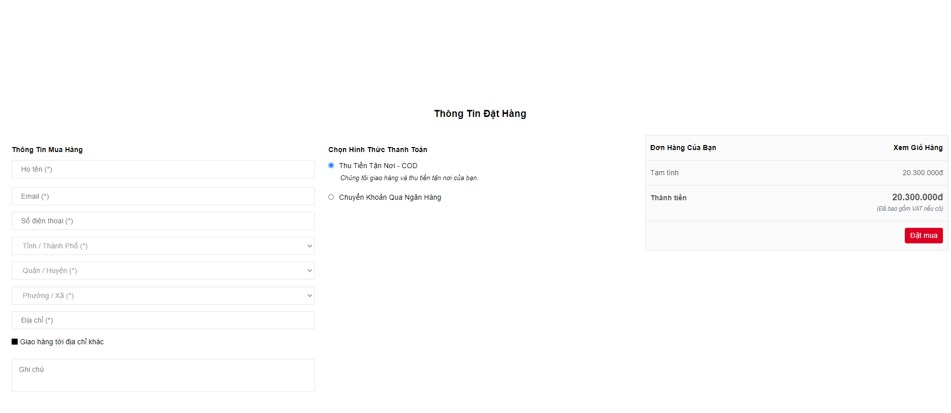 * Cách 2: Đặt hàng qua website